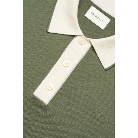 Polo GANT en coton et modal kaki dry herb green, coupe regular et toucher doux, un essentiel élégant du vestiaire estival.
