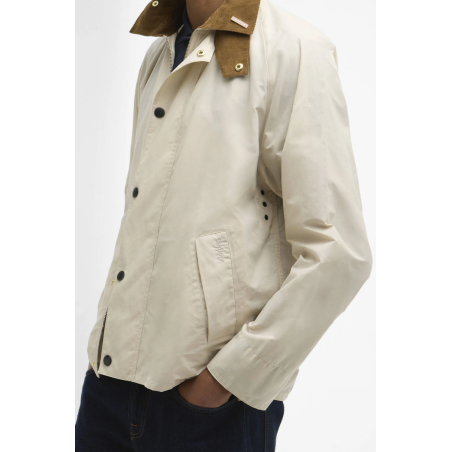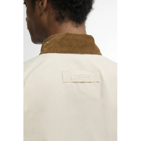 Veste Barbour légère couleur oatmeal, coupe courte japonisante et détails iconiques, idéale pour une allure casual chic au quotidien.