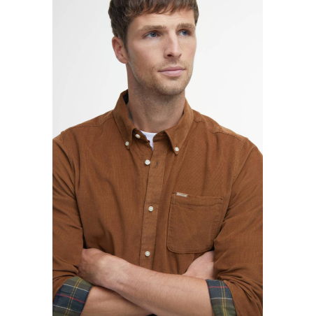 Chemise ajustée en velours côtelé marron, manches longues et col boutonné. Une chemise sobre et élégante qui allie confort et polyvalence.