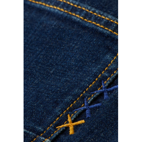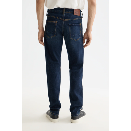 Jean denim slim straight coloris bleu brut, confectionné en coton avec une touche d’élasthanne pour plus de confort et de souplesse.