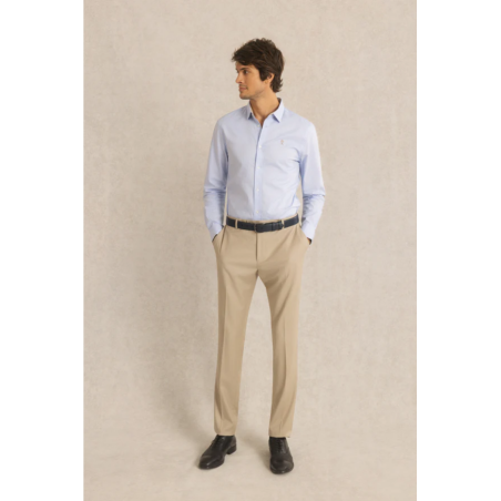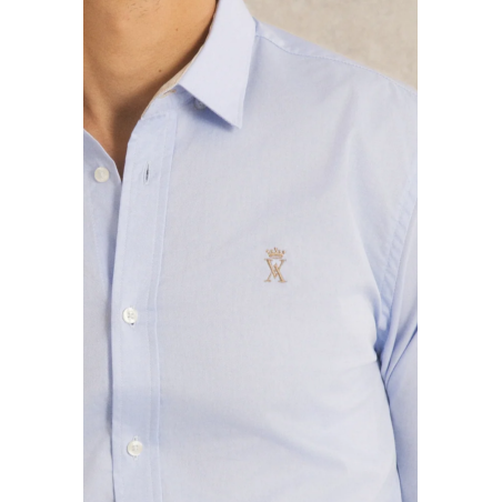 Chemise slim en coton Oxford bleu ciel, un basique revisité avec des finitions contrastées et une coupe ajustée élégante.