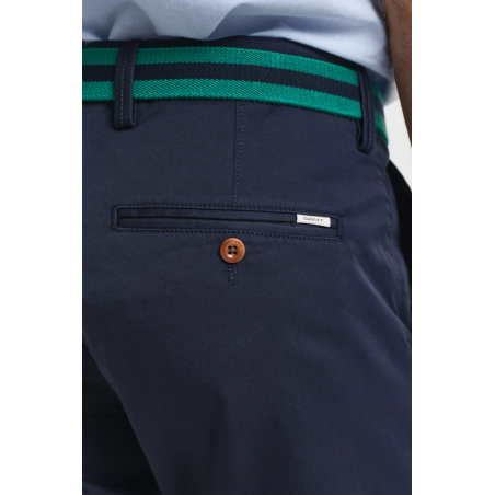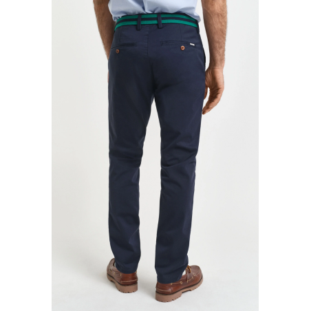 Confortable et élégant, le pantalon chino slim GANT est un indispensable du vestiaire masculin. Réalisé en sergé de coton biologique enrichi d’une touche de stretch, il assure une tenue parfaite et une liberté de mouvement optimale. Sa coupe slim, fuselée des hanches jusqu’aux jambes, structure la silhouette avec modernité. On retrouve les détails soignés chers à la marque : finition en chambray à l’intérieur de la taille, poche gousset pratique, poches arrière boutonnées et étiquette GANT discrète au dos. Polyvalent et intemporel, ce chino se porte aussi bien avec une chemise qu’avec un polo.