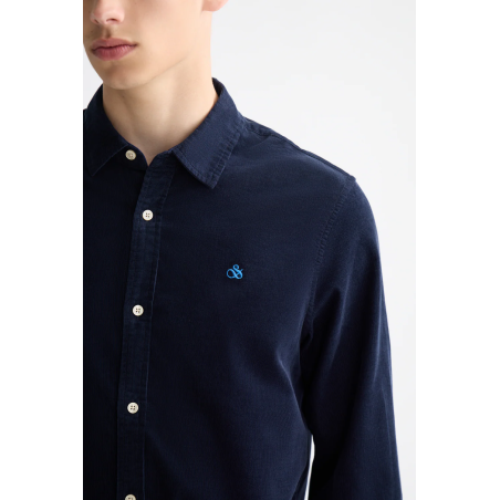 La chemise en velours côtelé bleu foncé Scotch & Soda est un essentiel du vestiaire masculin. Confectionnée en 100 % coton, elle séduit par sa texture côtelée à la fois robuste et confortable. Sa coupe regular fit assure un tombé naturel et facile à porter au quotidien. Parfaite en chemise classique ou en surchemise, elle s’adapte aussi bien à un look décontracté avec un jean qu’à une tenue plus habillée avec un pantalon chino.