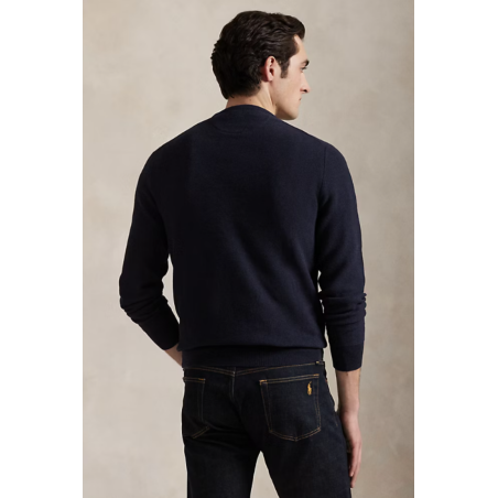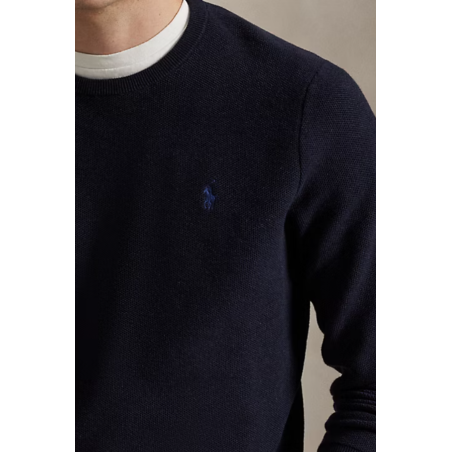 Pull en coton piqué bleu marine, coupe regular fit, col rond et logo brodé sur la poitrine.