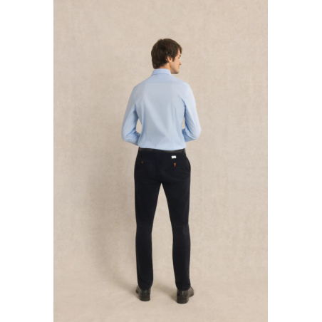 Chemise slim en popeline stretch bleu ciel, élégante et confortable avec sa coupe ajustée et son tissu souple.