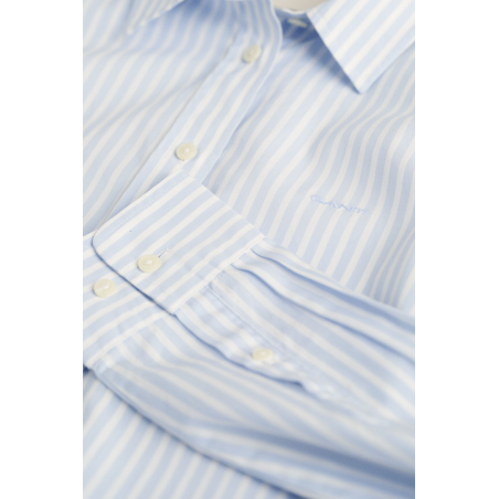 Chemise femme en popeline de coton rayée bleu clair, coupe régulière et logo brodé sur la poitrine. Un classique frais et raffiné du vestiaire GANT.