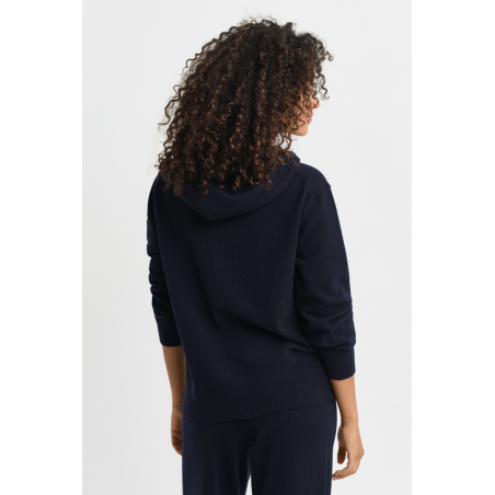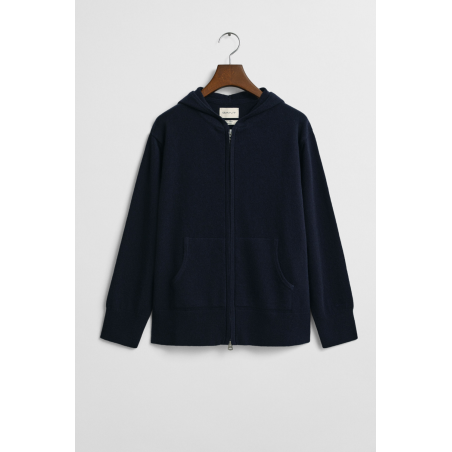 Ce sweat zippé GANT en laine d’agneau italienne extra-fine combine élégance et douceur avec une aisance naturelle. Son coloris bleu profond “Evening Blue” apporte une touche de modernité intemporelle, parfaite pour un style chic décontracté. Entièrement tricoté, il se distingue par sa capuche à cordons de serrage, ses fentes latérales, sa fermeture éclair double sens et ses poches kangourou pratiques. Le logo GANT brodé sur la manche souligne son authenticité. Un essentiel premium pour affronter la mi-saison ou se lover dans la douceur hivernale.