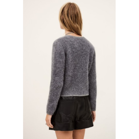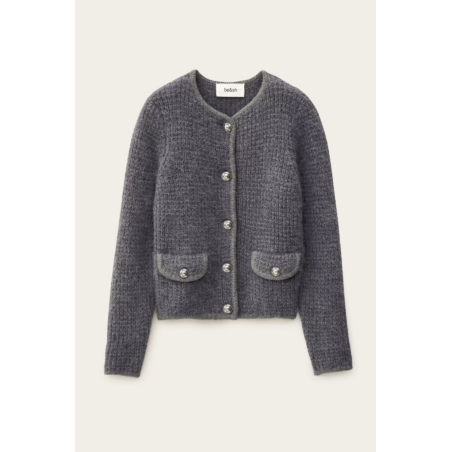 Cardigan gris doux et confortable en alpaga et coton biologique, une maille casual chic signée Ba&sh.